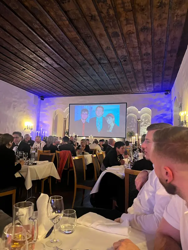 Der Abend war geprägt von zahlreichen Highlights, die den festlichen Charakter der Weihnachts-Gala unterstrichen. Eine prachtvolle Jubiläumstorte begeisterte nicht nur optisch, sondern auch geschmacklich. Für Unterhaltung sorgte die humorvolle Oscar-Verleihung mit originellen Kategorien, die für zahlreiche Lacher sorgte. Ein DJ brachte die Tanzfläche in Schwung und schuf eine ausgelassene Atmosphäre, während ein köstliches Menü die Gäste kulinarisch verwöhnte und den Abend perfekt abrundete.