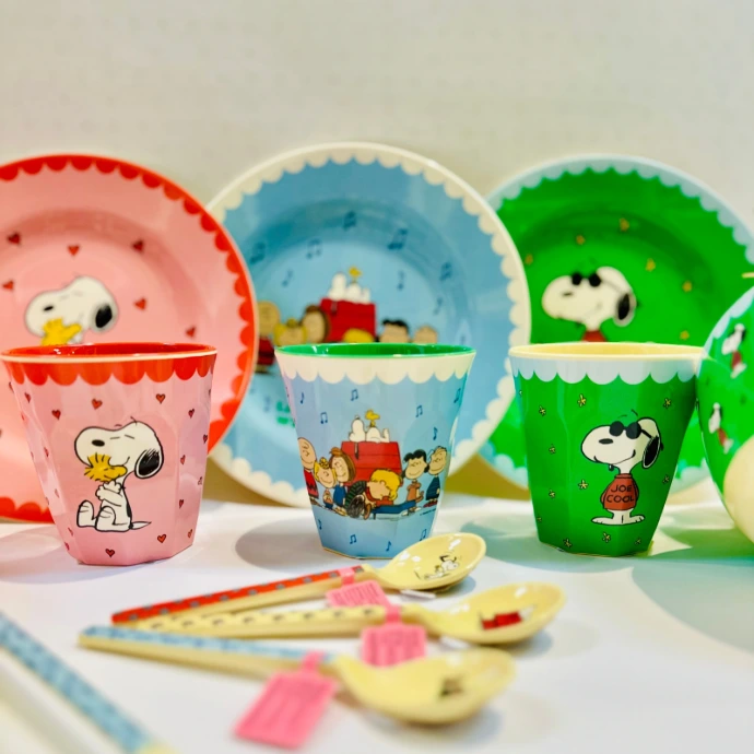 Neu bei uns: Die farbenfrohe Kollektion verbindet den nostalgischen Charme der Peanuts mit dem fröhlichen Design von rice. So entstehen liebevoll gestaltete Teller, Tassen, Löffel und Lunchboxen, die den Alltag ein bisschen bunter machen.