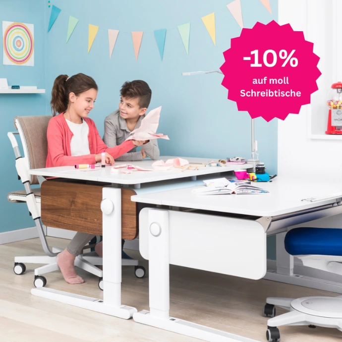 Die durchdachten Modelle unterstützen ein gesundes Arbeiten und passen sich mit ihren funktionalen Eigenschaften ideal an den Alltag an. Profitieren Sie jetzt von 10 % Rabatt auf lagernde moll Schreibtische.